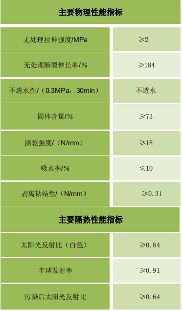 短、弹性低、易渗漏、造价高、塑性差、施工要求高、基材结合力差、易燃不环保等缺陷而开发的新型屋面隔热防水材料,显著降低室内温度的同时,具有长寿命、高弹性、不渗漏、性价比高、可塑性强、施工简单、基材结合力好、安全绿色环保等一系列明显优势。