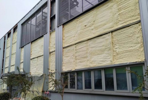 保温层效果不佳导致车间内的冷(热)气通过墙体往室外大量逸散,针对此情况,我们采用聚氨酯发泡材料对墙体保温层进行改造,以提升其保温效果。