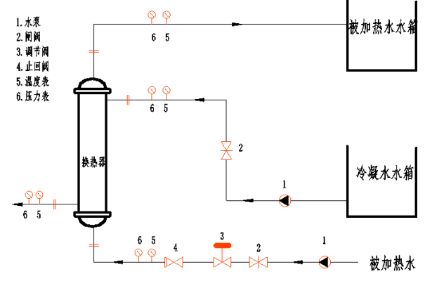 蒸汽冷凝水换热器,需要在冷凝水出水端加装一个小水箱以便存储部分水量以作缓冲,在小水箱底部连接水泵,将冷凝水抽入换热器盘管中,同时,将原先直接抽入加湿器蓄水箱的冷水抽入换热器中,充分换热后再接入原先的水泵中抽入加湿器的蓄水箱中,相当于在前道提前预热一下冷水。
