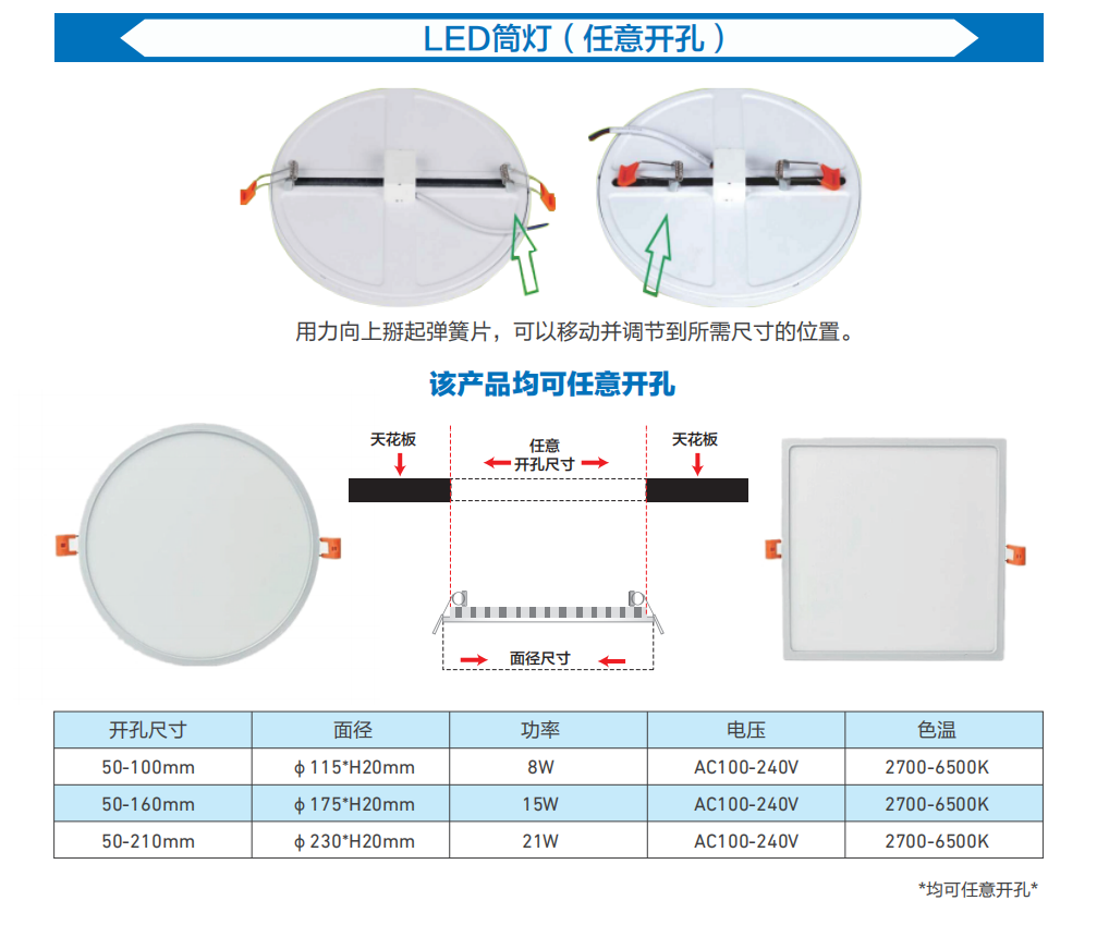 LED圆形筒灯 方形筒灯,适用于办公区、走廊、天花吊顶等区域新装修或灯具改造