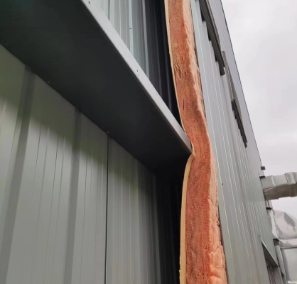 很多钢架结构的厂房在起初建设时,采用的是内外钢板加玻璃棉卷毡的保温方式(玻璃棉卷毡是现场手工固定,后覆外层钢板),且墙壁与保温层是非复合型(即非厂内加工的一体化板材)。手工制作的玻璃棉保温层存在以下几点会直接导致保温效果差:1、手工固定,保温层与内外壁的钢板不贴合;2、手工固定,后续保温材料会下坠(滑落);3、保温层厚度通常不足,夹层中间会留下较大缝隙,特别是冬季时,甚至还会出现灌风现象。如下图: